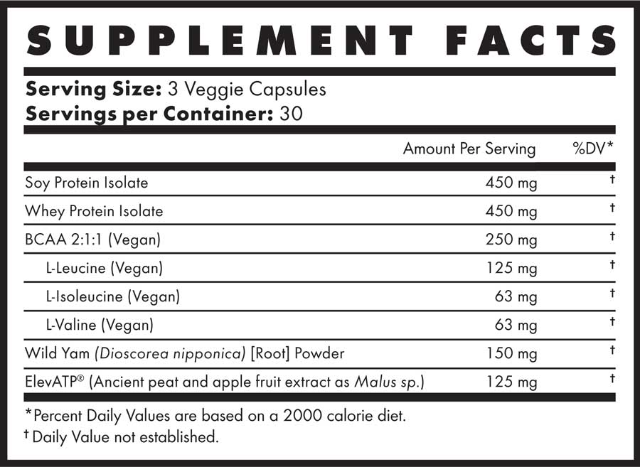 Wild Yam Powder, ElevATP, Silica and Magnesium Stearate.