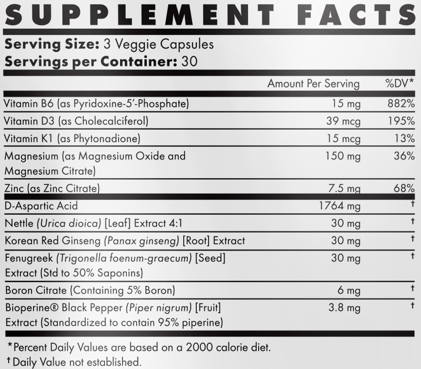 Vitamin K1, BioPerine, Boron Citrate, Magnesium, Vitamin B6, Nettle Leaf, Vitamin D3, Zinc